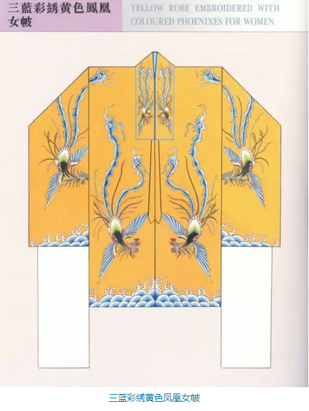 戏曲舞台上扮演皇后、贵妃、公主等的専用服装。明黄、杏黄均属皇家専用色彩,制做时力求富丽堂皇。