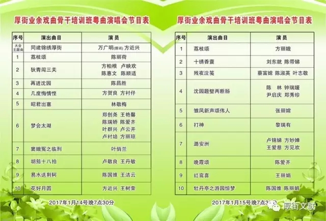 广大戏迷将要有眼福了!厚街业余戏曲骨干培训班将在2017年1月14日、15日晚上7:30分在厚街村社区大舞台为大家献上精彩演出!