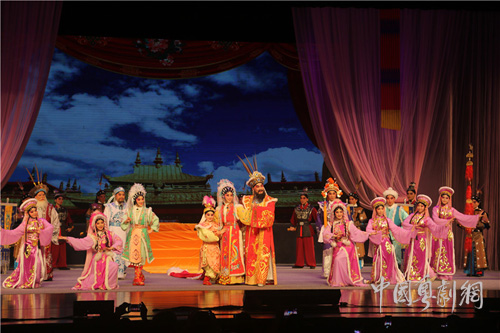 至于“出塞”一场(那是话剧原著没有的),一大段“主题曲”——《昭君塞上曲》是全剧中一个特别重要的环节,虽然如红线女所说,唱来“难度比较大”,但琼霞把握得准,充分发挥了红腔的艺术特色,如开头的“南音”,从“散起”到“上板”,从“正线”转“乙反”,包括一些字在落音上作的移位和稍加变化的“抛舟腔”,琼霞都唱得跌宕有致;一段“云山错落青天外……”的“二黄慢板”,调式转回“正线”,琼霞唱出了好些富有红腔特色的代表性运腔,十分委婉流畅;到“梦断京华”一句的长拉腔,则更鲜明展现出红腔的华彩,丝丝入扣,令人陶醉。曲末的新曲“阳关三叠”,琼霞遵循恩师的唱法,尤其“心乱如麻”一句,所唱三次均作出了不同的处理,高低自如,将昭君此时此地的复杂心境声声托出,确实富有魅力,难怪获得了全场热烈的掌声。