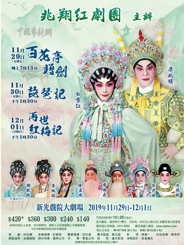 粤剧《百花亭赠剑》《琵琶记》等将于11月29日至12月1日在香港新光戏院大剧场隆重上演