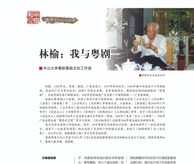 《林榆:我与粤剧》一文发表在《南国红豆》2021年第3期