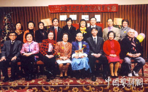 今年农历春节过后不久,还是正月的一天,我收到一封寄自加拿大温哥华的来信,里面夹有几幅照片。那是老友、百岁粤剧曲乐老人黄滔师傅的爱徒吴国柱、王少冰伉俪写来的。信中除了他们自己和代表黄师傅向笔者致以新春的祝福外,主要是报道说2013年12月28日,温哥华黄滔师生会为黄滔师傅在唐人街一酒楼举行满百周岁寿庆,世界各地有不少亲朋好友和生徒前来庆贺,筵开20多席,寿星、嘉宾、徒弟、学生上台唱曲欢庆,其中有滔叔学生、比他还大一岁(101岁)的麦冬青也上台高歌一曲,由师傅操高胡拍和,两位百岁老人与嘉宾们、生徒们尽情欢乐,笑颜逐开。爱徒文千岁、粱少芯夫妇将定制巨型蛋羔亲送到来致贺。尤其是英国女王伊丽莎白二世,和加拿大联邦政府总理、部长,卑诗省省长,温哥华市长、国会议员政要纷纷向他致函、致电祝贺。还说这是海内外粤剧界所有同仁都应感到骄傲的殊荣!几张照片是这次寿宴场面和去年(2013年)12月一次慈善演出后黄滔师傅将筹得的善款捐赠医院的纪念照。